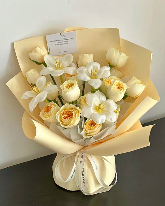 FF58 | Creamy 韓式庭園玫瑰鬱金香花束