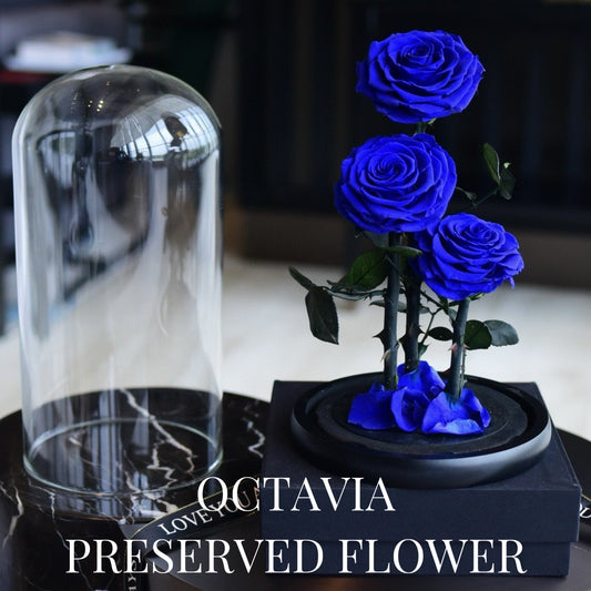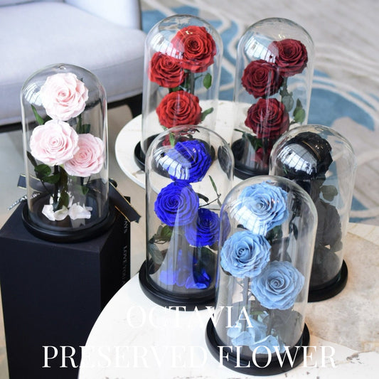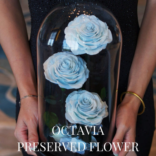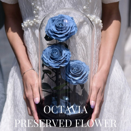 PFN18-三朵永生花玻璃罩(淺藍漸變)