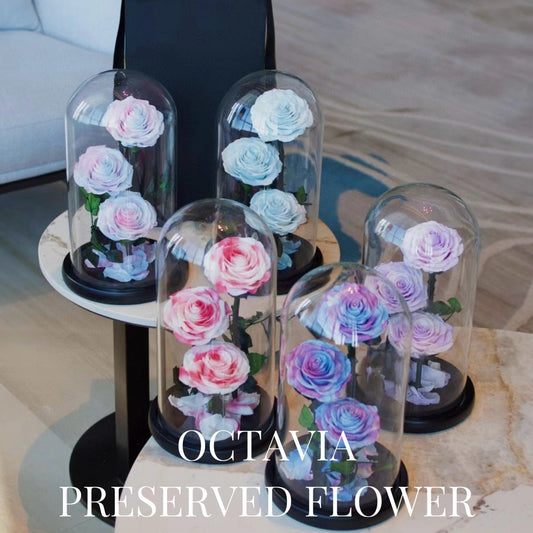 PFN18-三朵永生花玻璃罩(粉紅粉紫漸變)