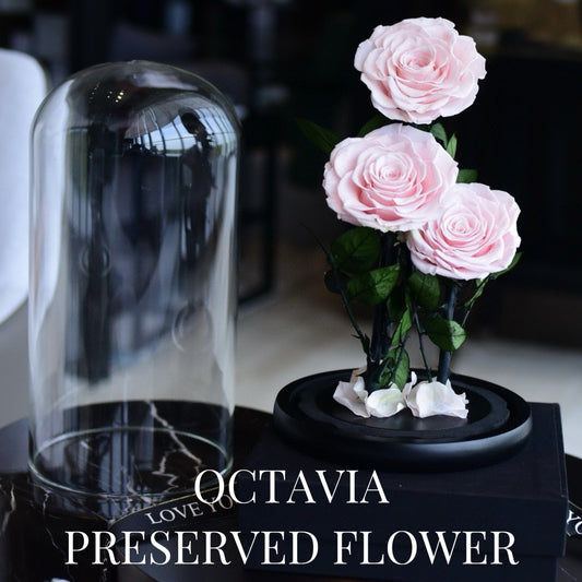 PFN18-三朵永生花玻璃罩(粉紅漸變)