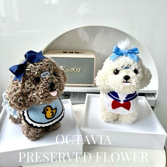 PFN18-三朵永生花玻璃罩(白色小香風)