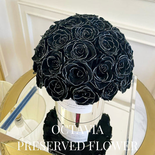 PFN17-鏡面永生玫瑰半球形花盒(黑色閃耀)