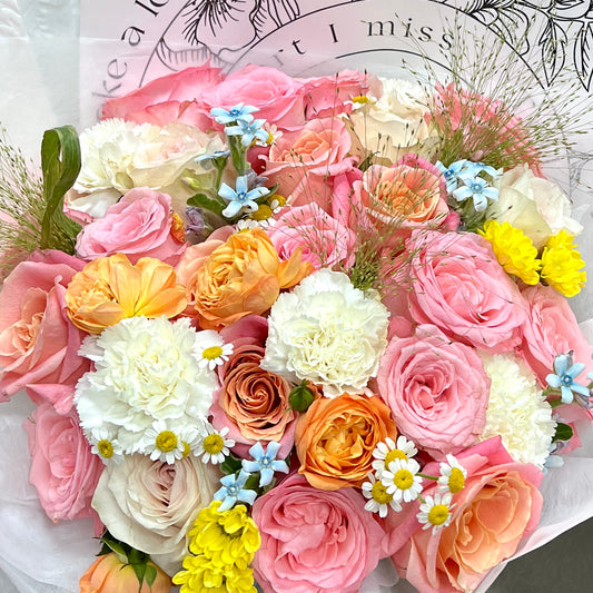 RF05⎪蜜桃橙色粉紅色玫瑰花束⎪白色手繪花紙⎪甜美柔和的浪漫之選