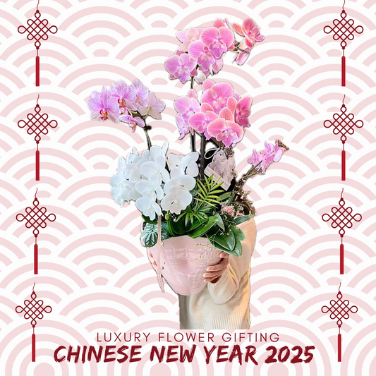 迎接蛇年,選擇我們精美的新春年花和蝴蝶蘭花!為您獻上各種精緻的花卉佈置,給摯愛親朋帶來幸運、繁榮和健康。今年特別系列包括象徵力量和美麗的優雅蘭花。