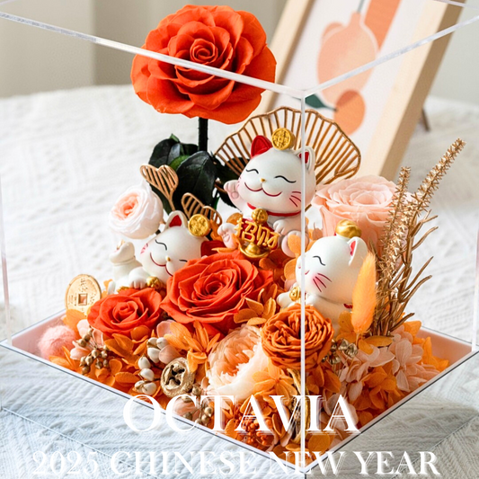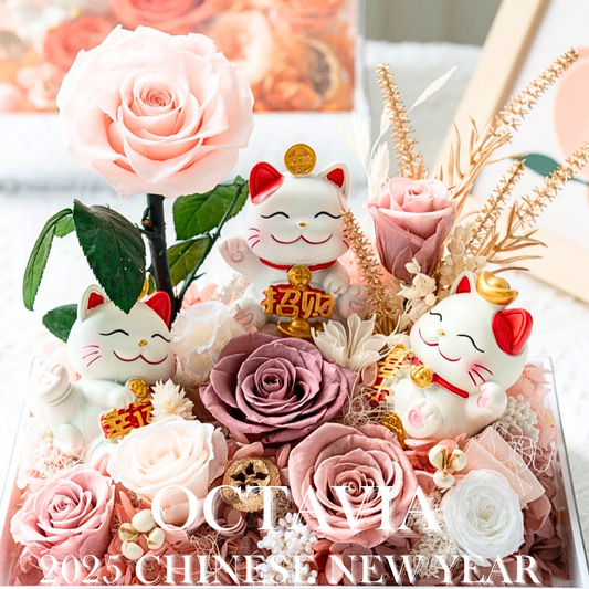 PFN18-三朵永生花玻璃罩(粉紅粉紫漸變)
