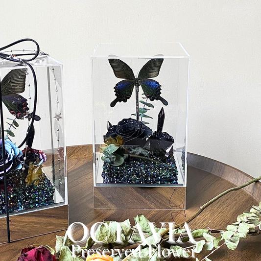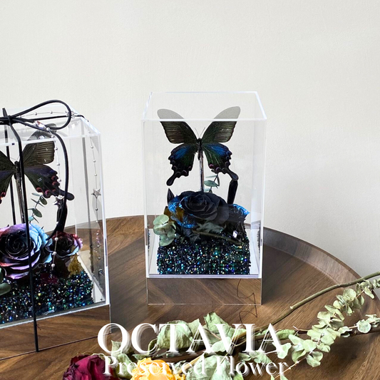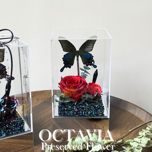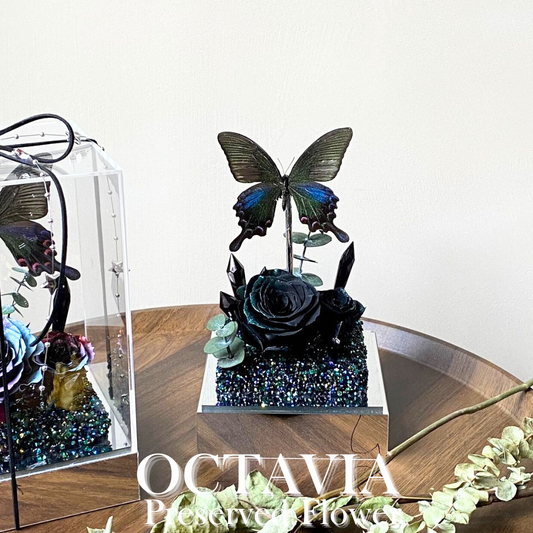 PFN18-三朵永生花玻璃罩(寶石綠色)