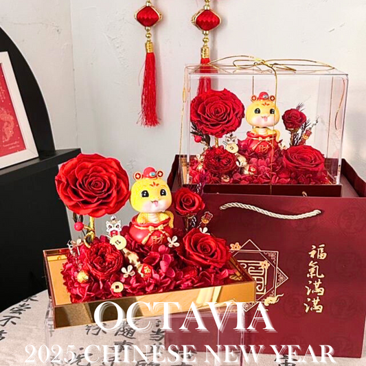 PFN18-三朵永生花玻璃罩(奶茶色)