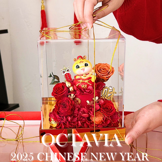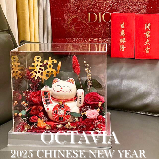 PFN18-三朵永生花玻璃罩(白色小香風)