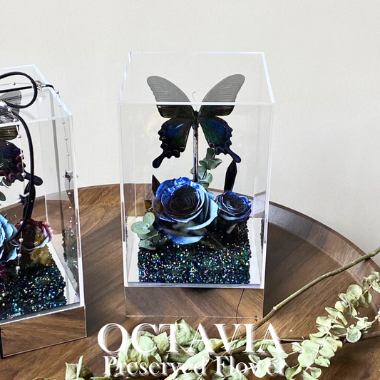 PFN18-三朵永生花玻璃罩(淺藍漸變)