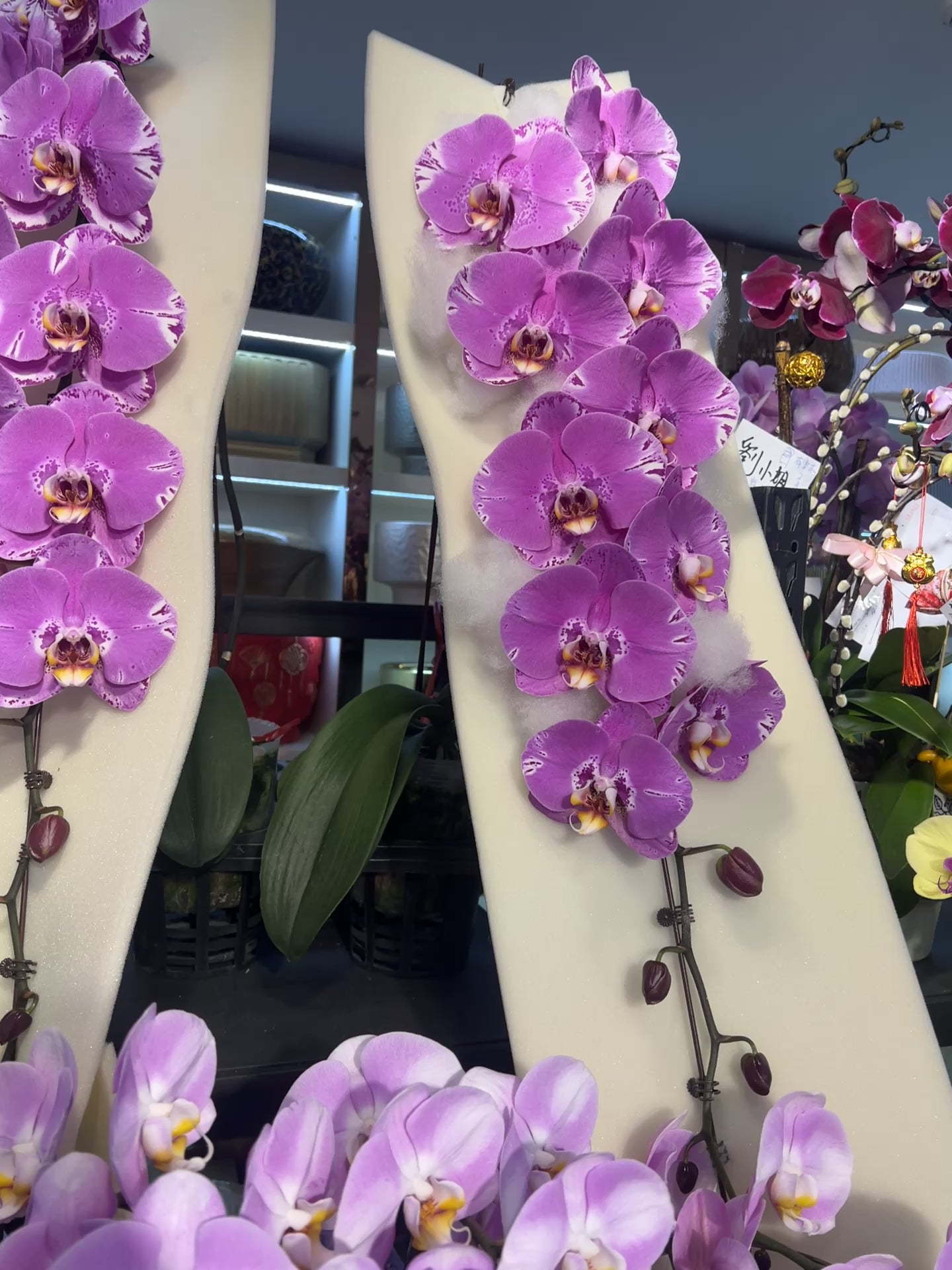 巨大而飽滿的花序從上而下垂墜,如瀑布般傾瀉而下,搭配 85–90cm 的整體高度,無論擺放在大堂、接待處或家居玄關,都能營造出大器不凡的迎春氣勢,寓意新一年事業步步高昇、財運滾滾而來。