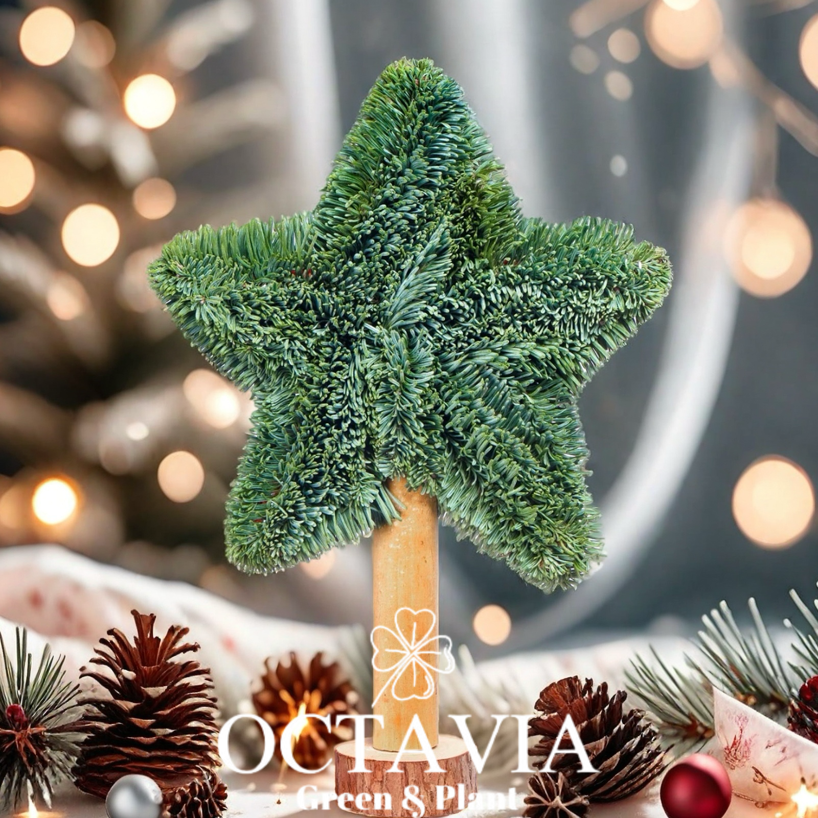 真聖誕樹-用新鮮的諾貝松純手工打造的星型聖誕樹,特別加上圓木型支架作為底部支撐,整體非常別緻。