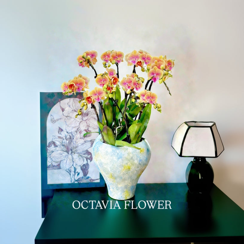 賀年蘭花-10枝橙黃色蝴蝶蘭-悅橙-手繪北歐花器