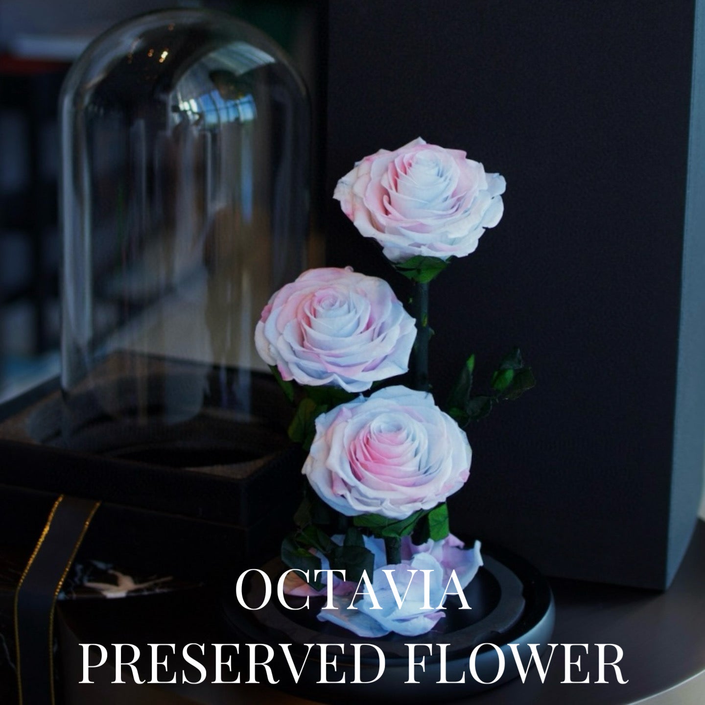 PFN18-三朵永生花玻璃罩(色)